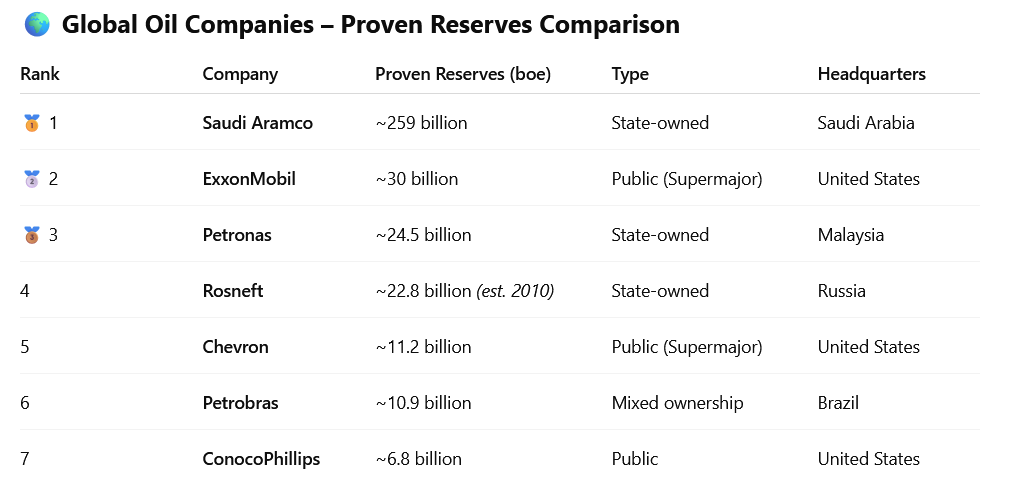 Its proven reserves of 10.921 billion barrels place it in the global top 10 among oil companies.