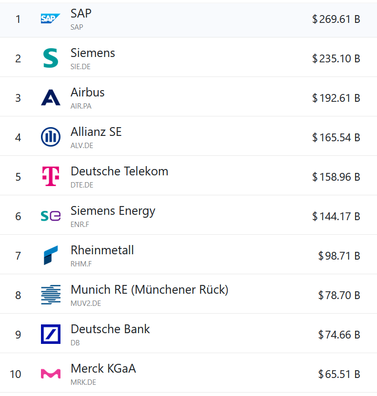 Source: https://companiesmarketcap.com/dax/largest-companies-by-market-cap/