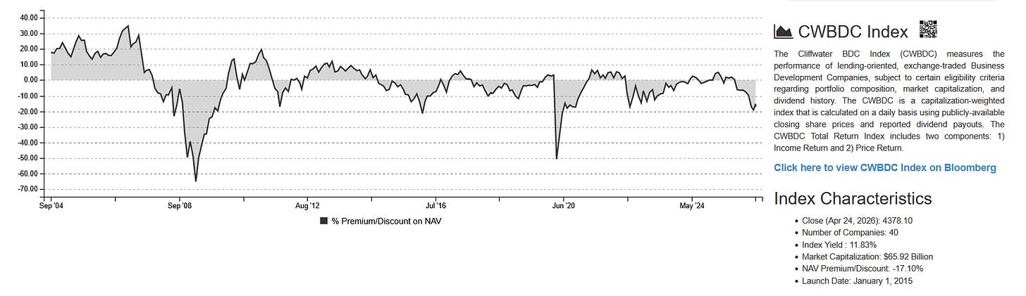 And second, more specifically, what role could they play for me right now, at a time when everyone is talking about private credit as a potential source of systemic risk? Most investors will avoid BDCs today because of fear. That’s usually when they become interesting.