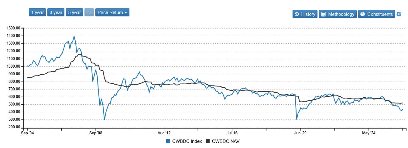 First, let us be purely formal and theoretical. The exercise is always worth doing. During economic expansions, BDCs see their net asset value (NAV) rise thanks to improving fundamentals of their portfolio companies (higher earnings, lower defaults). The market price often follows this increase, sometimes trading at a premium to NAV, reflecting investor optimism. In a slowdown or recession, however, defaults increase, leading to a drop in NAV and asset impairments. The market price can then disconnect and trade at a sometimes severe discount (10-30%), amplifying volatility. This decoupling between price and NAV offers opportunities for patient investors, but also signals credit stress.